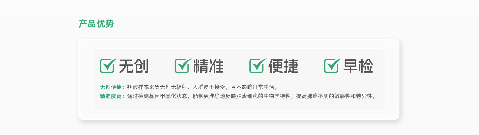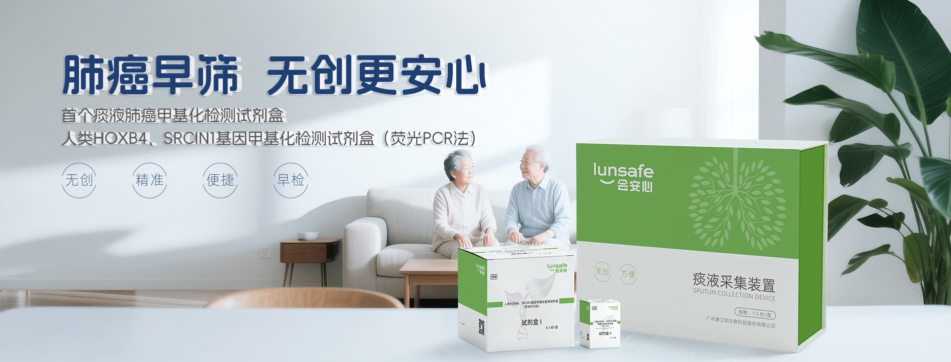 會安心?人類HOXB4、SRCIN1基因甲基化檢測試劑盒(熒光PCR法)于2025年5月29日正式獲批上市,這是首個痰液肺癌甲基化檢測試劑盒。 會安心?通過解讀痰液中脫落腫瘤細胞的基因異常改變(人類HOXB4、SRCIN1基因甲基化)進行肺癌的早期檢測,幫助發(fā)現(xiàn)患者早期肺癌病變情 況, 有希望將肺癌阻斷在早期階段,從而達到提前預(yù)防和治療肺癌的目的。