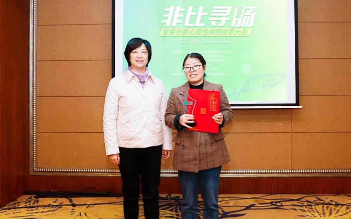 經(jīng)過(guò)激烈的角逐,最后來(lái)自江蘇省省級(jí)機(jī)關(guān)醫(yī)院的選手尹冬華奪得了冠軍獲得專(zhuān)家評(píng)審團(tuán)的一致認(rèn)可,成功奪得“非比尋腸”首屆長(zhǎng)安心病例故事大賽華東區(qū)決賽冠軍,從本次大會(huì)主席周衛(wèi)紅主任手中接過(guò)了頒發(fā)的獎(jiǎng)狀。