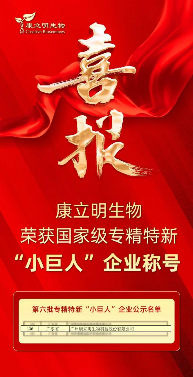 喜報(bào)!康立明生物榮獲國(guó)家級(jí)專精特新“小巨人”企業(yè)稱號(hào)