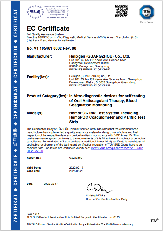 HemoPOC®凝血檢測儀是一款便攜式凝血檢測設(shè)備,與配套的檢測卡組成。HemoPOC®凝血檢測系統(tǒng),用于定量測定新鮮指尖毛細(xì)血管血的凝血酶原時(shí)間。該系統(tǒng)操作簡單,滿足即時(shí)檢測及床旁檢測的應(yīng)用需求,增強(qiáng)抗凝管理和慢病管理的有效性。