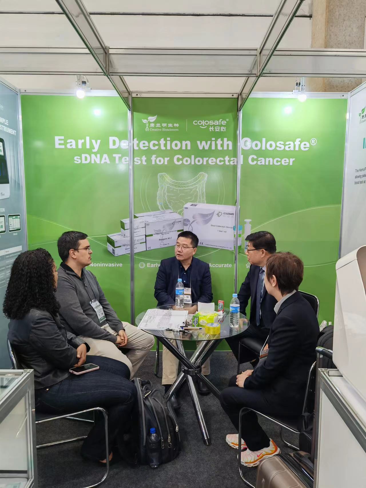 在第28屆巴西圣保羅國際醫(yī)療展吸引了來自全球醫(yī)療產業(yè)的專業(yè)人士,而康立明生物的多個腫瘤基因檢測創(chuàng)新技術產品與自動化檢測系統(tǒng)備受矚目,受到了業(yè)內外的廣泛興趣和認可??盗⒚魃镌谡箷霞姓故玖碎L安心®糞便基因腸癌檢測、久安心®膀胱癌基因檢測、會安心®肺癌基因檢測、全自動樣本預處理儀以及康立明全資子公司好芝生物產品HelixPOC®全自動微流控熒光PCR一體機、HemoPOC®凝血檢測系統(tǒng)等創(chuàng)新科技成果。 這些創(chuàng)新技術展示了康立明生物在腫瘤基因檢測領域的領先地位,對于腫瘤的早期篩查、個性化治療以及疾病管理具有重要意義。